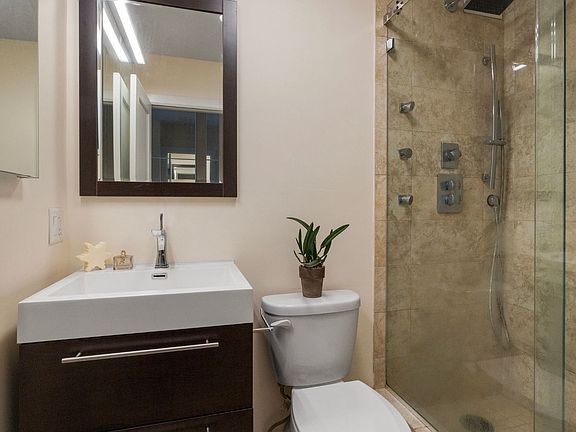 High-end finishesGreat southern lightSpa-like bathroomSense of privacyStainless steel appliancesLight wood floorsOversized mirrored closet doors