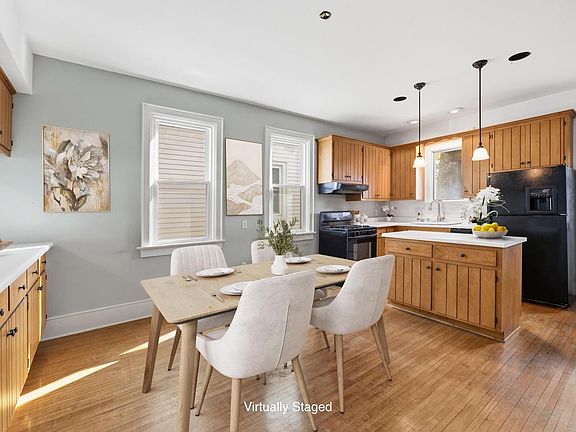 Set along a tree-lined street in vibrant Bay View, this inviting home offers bright, comfortable living spaces throughout. The main floor features higher ceilings that enhance openness and natural light. Wood floors in the dining area and kitchen and the dining room's built-in brings a touch of classic character. A bedroom and full bath on the main level provide convenience and flexibility. New carpeting throughout the home and fresh paint upstairs create a soft, refreshed feel. Upstairs, two calming bedrooms share a second full bath, and the larger bedroom opens to an elevated porch overlooking the surrounding treetops. A backyard space and two-car garage offer room for outdoor enjoyment and storage. Moments from Humboldt Park and easy access to the everyday rhythm of Bay View. Welcome!