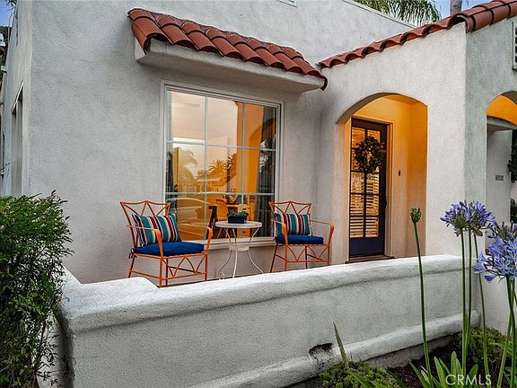 Classic curb appeal abounds with signature red tile accents, colorful decorative tile work, a welcoming arched entry, and an inviting front patio—perfect for relaxing with a book or enjoying your morning coffee.