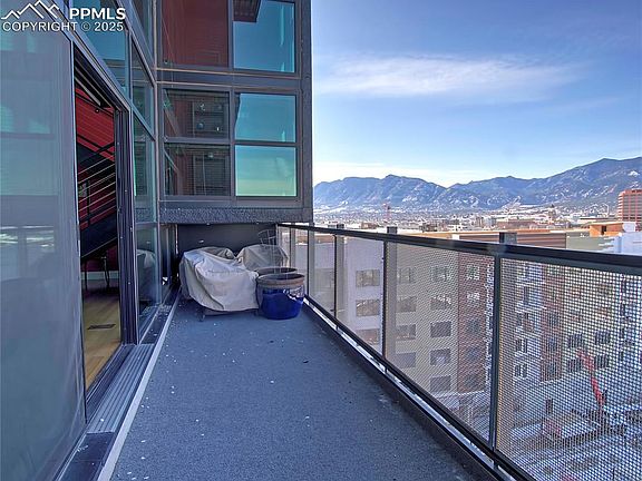 Spectacular 12th-floor Penthouse. Spacious floor plan with a soaring wall of windows and ceilings. The Gourmet kitchen is wonderful with granite counters, plenty of storage, and room to create. The Living area is open but cozy with a gas fireplace and wine bar. The stairs ascend to the master bedroom with a queen bed, adjoining luxury bathroom, desk area with mountain views, sitting area retreat that looks out to the HUGE Pikes Peak, and front range views. This Penthouse is in a gated building with private 12th-floor access. Additionally, this Penthouse has a 2-car detached garage, fitness center, sauna, and billiards room,. Penthouse is close to downtown walking, restaurants, highway access, Ft. Carson, Schirever, Peterson AFB court house, and more. This home will not disappoint. All utilities are included in the HOA.