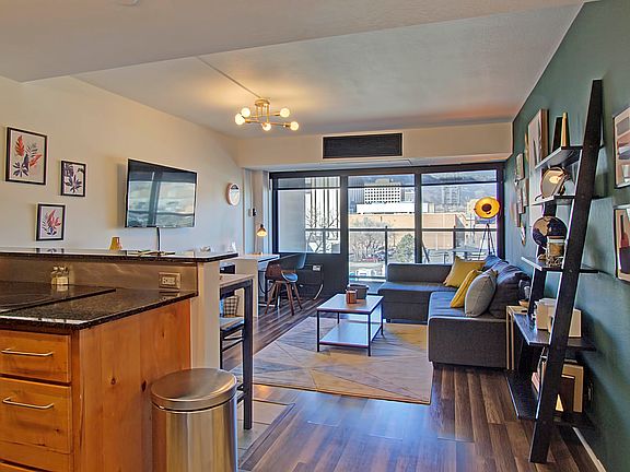 Enjoy this 1 bedroom 1 full bath downtown loft on the 7th-floor loft . The kitchen has Granite counters,LVP floors, modern and inviting living space with queen bed.. This loft has a gated assigned parking space, secure building, fitness center, sauna, billiards room and community office space on the main. This loft is in walking distance to coffee shops, dining, highway access, parks, and more. Short-term all-inclusive loft. Includes furnished, utilities, wifi, washer, dryer, towels, linens premium gated parking.