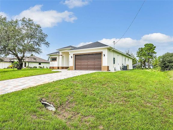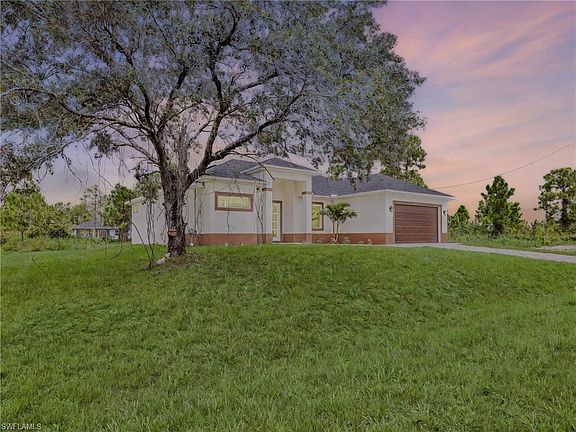 The most stunning NEW CONSTRUCTION on a HALF-ACRE LOT in Lehigh Acres, located on a QUIET STREET. This home offers 4 BEDROOMS and 2 BATHROOMS with an OPEN CONCEPT layout and SUPER HIGH CEILINGS. The BATHROOMS feature FLOOR-TO-CEILING TILE SHOWERS and FRAMELESS GLASS DOORS. The MASTER SUITE includes DUAL WALK-IN CLOSETS, an OVERSIZED SHOWER, a SOAKING TUB, and DOUBLE VANITIES. The KITCHEN showcases a LARGE ISLAND, and the LAUNDRY ROOM is equipped with CUSTOM CABINETS and a UTILITY SINK. Additional highlights include a CHALET-STYLE LANAI with TILE FLOORING, IMPACT WINDOWS AND DOORS, a DRIVEWAY WITH PAVERS, an EPOXY-COATED GARAGE FLOOR with SIDE ENTRY, DESIGNER PENDANT LIGHTS and CEILING FANS, a FULL SPRINKLER SYSTEM, and PROFESSIONAL LANDSCAPING. CLOSING COSTS CONCESSIONS AVAILABLE FROM THE SELLER.