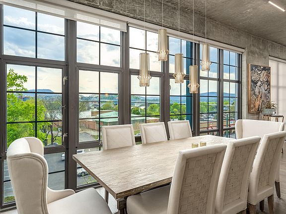 Chattanooga's North Shore on the River is charming to say the least. This top floor, all on one level penthouse has too many features to mention. High ceilings, exposed concrete commercial construction. Tech lighting, natural stone/solid surface countertops. Electronic blinds, and/or window coverings. Open floor plan includes Wet Bar includes 2 sinks, wine cooler, ice maker, dishwasher and Bosch refrigerator. Gourmet Kitchen includes Fisher & Paykel dishwasher drawers, Sharp undercounter microwave, stainless steel appliances including refrigerator, Great Room, Dining room, Study. Hardwood and tile floors throughout, central vacuum. Master bath features: Jacuzzi tub, full body massage shower system with multiple showerheads. 2nd Jacuzzi tub. Wainscoting, gas cooktop (5 burners) with double ovens. Two (2) laundry rooms, Two large storage Rooms.