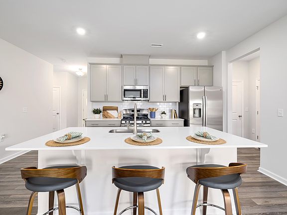 Enjoy 3 bedrooms and 2 baths with private yard and attached 2-car garage. Home features a spacious, open kitchen with quartz countertops, custom cabinets and living room. Stainless steel appliances with gas stove range. Primary bedroom features a spacious bathroom with glass shower and walk-in closet. Washer & Dryer are included. Community includes a seasonal pool, fenced-in dog park and green spaces throughout. Landscaping and lawn maintenance are included. Images are from the same floorplan home, but cabinet color and features may vary.