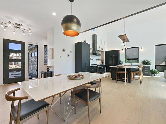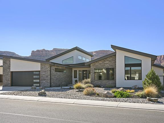 Looking for an immaculate modern home with unobstructed views of the Colorado National Monument? Look no further - 417 Granite Falls Way has it all. Nestled in the coveted Granite Falls neighborhood of the Redlands, this home backs directly to HOA open space, ensuring your Monument views stay wide open and uninterrupted. Out front, the modern stone and stucco façade pairs beautifully with high-desert xeriscaping, creating a look that’s sleek, sophisticated, and perfectly suited to its surroundings. The bold architectural lines - featuring contemporary skillion and lean-to roofing - set the tone before you even step inside. Once through the door, prepare to be wowed. Expansive windows flood the home with natural light, highlighting light LVP flooring and clean, modern lines. The open-concept living and dining area flows effortlessly to the covered back patio - perfect for al fresco evenings with Monument sunsets as your backdrop. The kitchen is a dream, showcasing stylish black cabinetry, white quartz countertops, high-end appliances, and a massive center island inviting everything from morning coffee to late-night laughs. A walk-in pantry makes any home chef swoon, while wood-accented lighting adds warmth to the sleek design. The adjacent living/family room features soaring ceilings, a striking modern fireplace, and floor-to-ceiling windows framing jaw-dropping red rock views - a true showstopper. The primary suite offers a calming retreat with vaulted ceilings, patio access, and - you guessed it - more Monument views. The spa-like ensuite includes a freestanding tub, walk-in glass shower with designer tile, dual sinks, and elegant modern finishes. A large walk-in closet completes the space. Three additional bedrooms are bright and beautifully designed - ideal for guests, family, or a home office. The oversized two-car garage provides extra room for bikes, tools, or adventure gear - because, well, this IS the Redlands. Out back, enjoy a covered patio made for lounging, dining, and soaking in those spectacular views. The yard blends lush grass with low-maintenance landscaping and trendy hog-wire fencing. A fire pit and hot tub area round out the perfect backyard retreat for starlit Colorado evenings. Energy-efficient features like solar panels and a tankless water heater make this home as smart as it is stunning. 417 Granite Falls Way - modern living, Monument views, and effortless Colorado style. Don’t wait to see it - schedule your showing today!