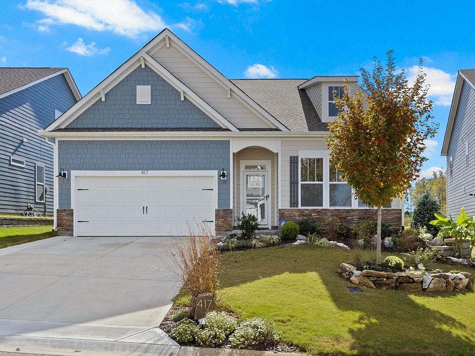 Welcome to 417 Jack Hunter Place! This beautiful and professionally landscaped front yard home is conveniently located and tucked into Reidville’s Chumley Estates subdivision! Great access to both Greenville and Spartanburg, this home built in 2023, is loaded with upgrades and improvements galore! This spacious and open floor plan with 10’ ceilings, first floor master suite and upstairs private suite is a must see! Upgraded dimmable LED ceiling lights and fixtures throughout this home enhance the beautiful wainscoting entryway which greets you as you move into this luscious open space that brings together the living, dining and kitchen area surrounded by windows with a view! Hugh 13’ kitchen island with beautiful granite countertops, upgraded KitchenAid stainless steel appliances are a must have for anybody that loves to cook. Beautiful natural Tennessee stone surrounds the custom built Hickory gas fireplace mantle and door frame with attached adjustable built in tv mount only adds to the warmth of this space. Moving into the master suite with trey ceilings and a master bath complete with double vanity, private toilet closet and a large custom, no step open shower with a bench and spa like fixtures, are sure to reinvigorate you! Master closet is large and has ample space to organize your wardrobes! Two additional main level bedrooms share a full bath. Laundry room with added cabinetry, sink and mudroom, sits off the kitchen with access to the 2 car garage. Second level features a 4th bedroom, a third full bath and large living space for anyone that has guests!! Outside you’ll find a covered patio which opens up to a larger, beautifully stamped concrete space with stone wall great for barbecues!!! DON’T MISS YOUR CHANCE TO SEE THIS UPGRADED HOME TODAY!