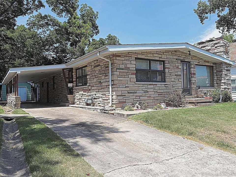 Unique mid century modern full stone masonry home. 3 bedrooms, 3 full baths, vaulted ceiling, skylights, eat in kitchen with island and built-ins. Wood burning fireplace in living room, large master bath with walk in shower. Lower level has a large family/recreation room with bar and gas vented fireplace. Office/den. Lots of storage area. Sit and enjoy the enclosed 12x28 porch off the back. Garage. Multiple car carport. Handicap accessible entrance. Great downtown location!