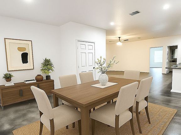The thoughtfully designed open yet split floor plan features stained concrete floors throughout for a modern, low-maintenance touch. The spacious kitchen includes brand-new appliances, sleek granite countertops, and an included refrigerator—making it move-in ready.
