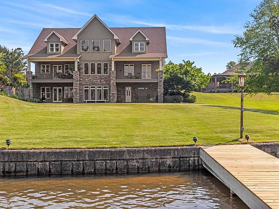 Rare Lake Martin find—over an acre flat lakefront lot in Windover. Enjoy lakefront views from three covered patios. The main level features an open layout, chef’s kitchen with Wolf stove and built-in ice maker, and a primary suite with lake views, patio access, and dual closets. Also on this level: a second bedroom with private full bath, guest half bath, and spacious laundry room. Upstairs includes a den with built-ins shelves and cabinets, two bedrooms, two full baths, bonus room, and walk-in attic ready to finish. The basement has a second living space with lake views, plus an additional master suite with sitting area and full bath with steam shower. Oversized garage and unfinished space provide even more room to grow. A rare combination of space, views, and versatility!