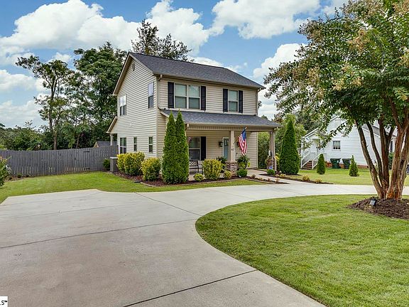 Immaculate and move-in ready, this charming home is ideally located just off Highway 14 between Woodruff Road and downtown Simpsonville with easy access to award winning schools and the best shopping, dining, and entertainment in the area! From the moment you arrive, you’ll appreciate the circular driveway with an additional parking pad for convenience and the mature landscaping. Inside, attention to detail shines throughout with on-trend paint colors, stylish designer light fixtures, and an inviting floor plan. The spacious living room flows seamlessly into the dining room, creating the ideal setting for everything from casual meals to elegant dinner parties. The updated kitchen features granite countertops, a subway tile backsplash, soft close cabinetry, and a full appliance package, making it both functional and beautiful. A convenient half bath on the main level is perfect for guests. A bright, sunny staircase leads to two secondary bedrooms that share a well-appointed hall bath with granite countertops and a tub/shower combo. The primary suite is a relaxing retreat with an attached bath boasting granite countertops and a deep tub/shower combo. The fully fenced backyard and large covered patio are perfect for grilling, entertaining, and fall football Saturdays while the expansive 29x19 workshop is a dream space for hobbyists and DIY enthusiasts! Fully equipped with electricity, it’s versatile enough to transform into the ultimate man cave, she shed, or creative studio. A perfect combination of style, comfort, and location—this home truly has it all. Welcome Home!
