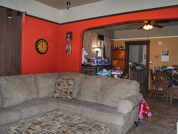 Ranch style living with plenty of room out and in. 2 bedrooms plus non conforming bed or additional space upstairs, open Living/Dining area. Full basement for additional storage or convert to finished and create more room. Fully fenced in backyard. Additional space for parking behind garage towards alley. Walking distance to pool and school.