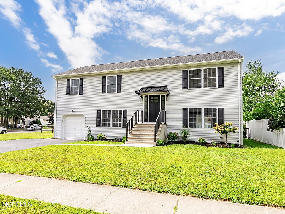 Nestled in a highly sought-after neighborhood on an expansive corner lot, this beautifully updated turn-key home presents an ideal layout for all your needs. The first floor features a generous living space complemented by two spacious bedrooms, or an option for one bedroom and a dedicated office, along with a full bathroom for added convenience. Ascending to the upper floor, you'll discover a stunning, brand-new kitchen adorned with modern finishes and stylish flooring, accompanied by an exquisite full bathroom that radiates luxury and three more bedrooms. Step outside to two level deck looking over your spacious backyard and has access from both floors. Come see all the updates and renovations! This home is sure to impress.