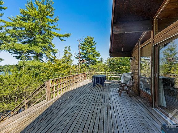 Facing west on Rosal Bay in Newboro Lake, 3 treed acres with 1,338' waterfront and family cottage featuring classic charm. The setting promises endless summers of peaceful privacy on the lake. Large 3bed 1bath cottage has breath-taking sunsets and panoramic views. Expansive wrap-around deck ideal for lounging and BBQs. Three season sunroom ideal for gatherings and family board games. Inside, wood accents including pine tongue&groove. Open vaulted living and dining area with hardwood floors, woodstove and impressive floor-to-ceiling wood-burning brick fireplace. Plus, walls of windows with bird's-eye lake views. Patio doors to deck. Light-filled kitchen with pantry. Primary bedroom offers you spectacular views overlooking the bay. Two more bedrooms and 3-pc bathroom. Garden shed has hydro. Dock included. Located in renowned Rideau Lake Township, Newboro Lake has great swimming, boating and fishing. Road maintenance and lake association fee is $400/yr. 20 mins Westport. 50 mins Kingston.