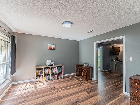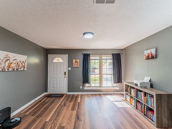 Down a tree-lined street in an established subdivision is where you'll discover this handsome brick 3 bedroom, 2 bath house! Enjoy a large privacy-fenced backyard, with trees, located on a quiet area at the end of a dead-end street. A spacious workshop with electricity gives you options for a workout area, game room, homeschool room, or workspace. A large foyer has room for adding built-in cabinets, use as a cubby area, showcasing a china cabinet, or etc. Winter nights will be a delight with a brick wood-burning fireplace--the centerpiece of the living room. A spacious dining area connects the living and kitchen areas. Inside the kitchen, you'll find lots of countertop space and storage, a smooth-top range with stove, dishwasher, and breakfast bar. Light enters through the patio windows which has a door leading to the 10x20 bonus room, perfect for use as second living area, office, or flex space. The primary bedroom includes an ensuite bathroom. In the laundry room, you have space for a 2nd refrigerator. Not many homes become available on this shady street in Green Acres!