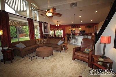 Pride of ownership! With an amazing new pergola & second story deck, lush landscaping & a large back yard, you'll have the outdoor space for gatherings. Many wonderful features inside & out! The open concept living room/kitchen/dining has soaring ceilings & tall windows to enjoy the beautiful back yard. Kitchen has been updated with solid surface counters & stainless steel appliances. The master bathroom has been completely remodeled & has a large, tiled walk-in shower, jetted tub, & vessel sinks, & the master bedroom has a sliding door out on to the back patio. Office has a wall of built-in cabinets, but could also be a formal dining room. Upstairs, are 2 guest rooms, a full bath with double sinks, a nice family room, & two outdoor decks. Full solar array which is owned. Great storage, 2 coolers (1 Breezeaire, 1 Aerocool), new carpet, a super location & trails just a few minutes away!