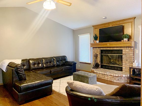 Highly Recommended Ranch Style home located in the Goddard School District. Entry with view of the Spacious living room with fireplace and vaulted ceiling. Open kitchen area with tiled flooring, breakfast bar, granite counters, bayed dining, pantry and desk area. This vaulted Master Suite offers the private bath area with a whirlpool, granite counters, a walk in closet and a separate shower. Two additional bedrooms offered on the main level, 1 with a window seat and 1 with double closets. The main level laundry offers a folding table, a window and tiled flooring. This full basement offers two bedrooms, 1 with double closets and the 2nd with a walk in closet.. Entertaining will be easy with the wet bar and large family room. Maintaining the landscaping and a lower water bill will be appreciated with the irrigation well and sprinkler system. Also offers a fenced yard, covered deck and sidewalks. Roof replaced approximately 3-4years, HVAC replaced approximately 4 years..