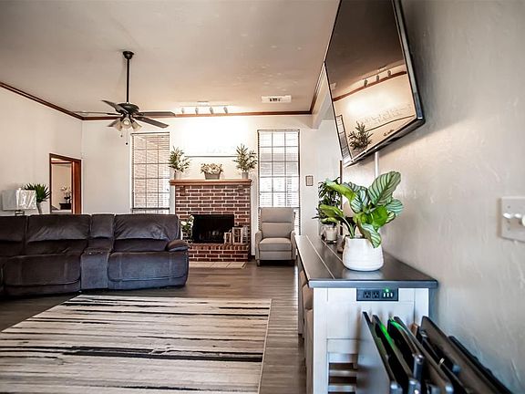 Beautiful Edmond Home located in a great location, close to turnpike and much more! This well-maintained 4-bedroom, 2-bathroom home spans a generous 2047 square feet, and offering new upgrades to the home. As you enter through the front door, you’ll be greeted by a welcoming foyer and a formal dining room. Kitchen features granite countertops with breakfast bar over seeing living room and stainless steel appliances. A cozy fireplace and large windows with natural lighting in the living room.The primary master bedroom is separated on the other side of the home from other bedrooms.The spacious master suite, boasting a spa-like en-suite bathroom with dual sinks, and large walk-in closet. Imagine evenings spent in this gorgeous large patio, and large yard with limitless opportunities. This home has a tandem 3 car garage, seller utilizes as a home gym. This home won’t last long, make this your forever home!