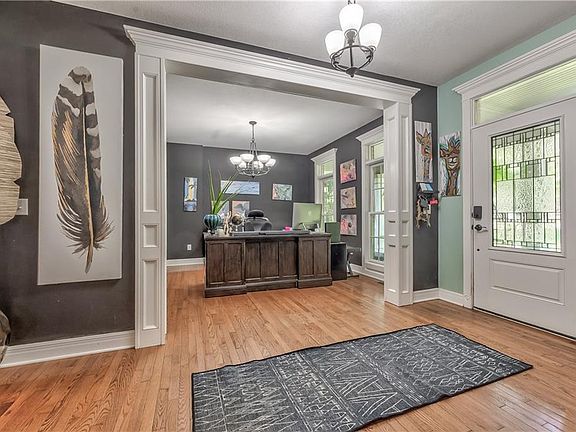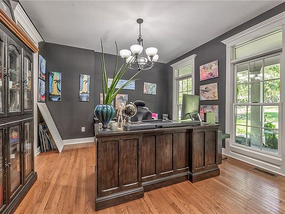 A rare opportunity to own a truly stunning retreat on 5 acres of wooded beauty just minutes from Lone Jack! From the moment you step inside, you’ll be greeted with soaring ceilings, walls of windows, and forest views that bring the outdoors in. The great room and sunroom flow seamlessly together, centered by a cozy fireplace—perfect for gatherings year-round. The chef’s kitchen is designed to impress with granite counters, hardwood floors, double oven, walk-in pantry, and custom spice cabinetry. The main-floor primary suite is a dream with his-and-hers walk-in closets and a spa-like bath. Every bedroom in this home offers a walk-in closet, giving everyone their own private retreat. Convenient main-level laundry adds to the ease of daily living. The finished walkout lower level is a showstopper: a massive rec room with a brand-new kitchenette, bedroom, bath, built-in sound system, and it’s even plumbed for a full kitchen—endless possibilities for entertaining or multigenerational living!