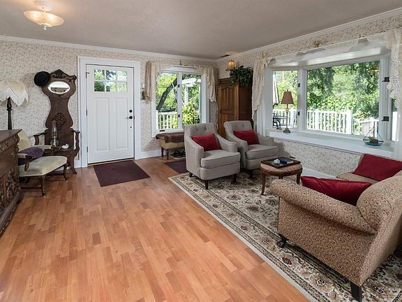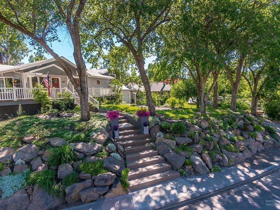 White picket fence, lush landscaping & expansive lawn lead to charming 1930's home on stately corner lot in the heart of Downtown Bend's Historic District. Seamless blend of timeless details & modern comforts. Wrap-around porch, gabled roof & sun filled bay window provide warm welcome into single level home w/living & family rooms, updated kitchen, guest room, office & sunny master suite w/ access to private backyard patio & hot-tub overlooking the gardens. Rental opportunity w/apartment above 3-car garage