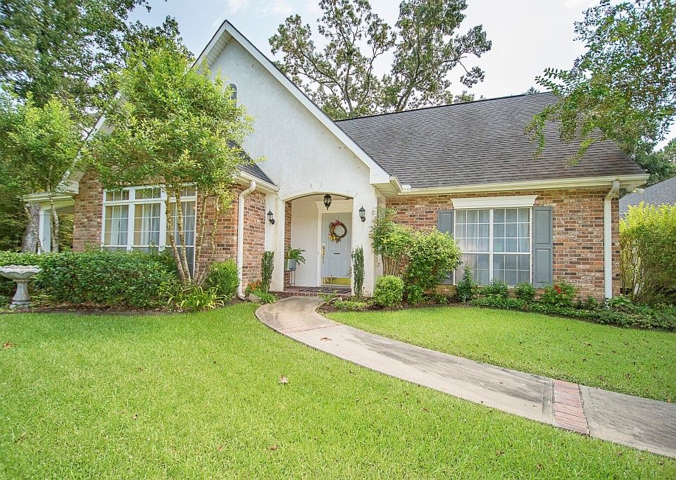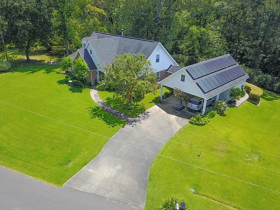 This fabulous custom home is perfectly situated on approx. 1 acre lot in the rolling hills of the highly sought after subdivision of Hickory Hollow in Ville Platte. This home has SO MUCH to offer INSIDE and OUTSIDE! The large living room has wood laminate floors, a wood burning fireplace, built-ins plus a hidden wet bar! The spacious kitchen with tons of custom cabinetry and storage also has plenty room for a kitchen table for cozy meals or a large island. It even has a bar big enough for bar stools on both sides. Master bedroom with built-ins, private porch and en suite bathroom plus a secondary bedroom are downstairs. Huge laundry room with full size closets, countertops and half bath. Upstairs are two charming bedrooms and a large bathroom. Custom storage closets line the length of the hallway. Additional unfinished bonus space upstairs under roof could be future bedroom, playroom etc. Dual AC/Heating units, one for each floor. The spectacular screened-in porch with vaulted tongue-and-groove ceilings is the perfect space to enjoy your coffee and the lovely wooded view or entertain friends and family. Porch has custom cabinetry for serving food and drinks and a cabinet for a mounted television. Step out of the screened porch onto the BBQ deck then into the landscaped yard that is wooded in the rear portion of property. This home also features a GUEST HOUSE off the garage perfect for guests, a mother-in-law apartment or rental. Guest house has large living room, full-sized kitchen with appliances and a full bath. Solar panels mounted on guest house roof capture energy and offset utility bill costs. Don't miss this incredible home! Schedule your appointment today!