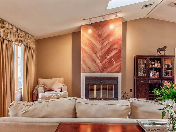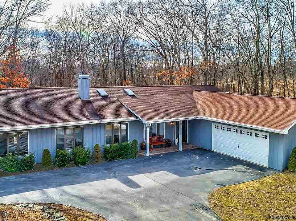 A beautiful five room sprawling California-style ranch home set on 1.90 manicured park-like acres. This highly desirable one-level layout boasts an open concept with soaring spaces and modern updates. Red Top Road, which runs parallel to the Hudson River is surrounded by mature trees and landscaping. This home is private and peaceful, ideal for a full-time or weekend get-away. Enter the home into the breathtaking living room with cathedral ceilings and floor to ceiling fireplace, which is the centerpiece of the room. The living room flows into the gourmet kitchen with granite countertops, which also opens to the formal dining area. Off of the kitchen to the east of the home, is the master suite with walk-in closet and ensuite bathroom, two additional bedrooms and second full bathroom. On the west side of the home a pair of French doors leads into the gorgeous and oversized family room with build-in bookcases and wainscoting. Two additional rooms, currently being used as a playroom and an office, are also off of the west end family room. Exterior doors lead to an open deck overlooking the lush backyard. Off of the deck is a sun-drenched enclosed three season porch with a surplus of windows and wood ceiling, creating a natural element to the space. An additional deck can also be found on the opposite side of the sun-room, which holds a brand new luxurious hot tub for star gazing and relaxation. Two-car garage, shed and playhouse. Rear yard is nestled with rock walls and large trees. A must see!