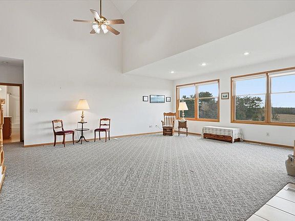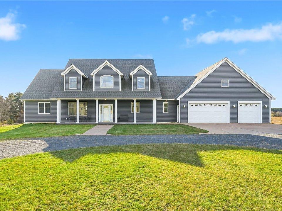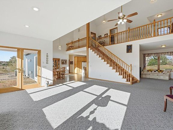 Welcome to this beautiful country retreat, perfectly set on 3.25 private acres with no neighbors in sight. Step through the front door and you’ll be greeted by a cozy living room that flows seamlessly into a spacious family room featuring vaulted ceilings and an abundance of natural light. Adjacent to the family room is a dining area and a large kitchen with plenty of cupboard space—ideal for cooking, entertaining, and everyday living. Down the hall, you’ll find two comfortable main-floor bedrooms, a full bath, and convenient main-level laundry. The upper level offers a peaceful retreat with a bedroom, bathroom, and a charming loft area that could serve as an office, flex space, or even be converted into an additional bedroom. This home is built on a slab and features in-floor heating, a furnace, and an impressive 400-amp service. The attached three-car finished garage also includes in-floor heating and a large finished bonus room above—perfect for a hobby space, office, or guest suite. Surrounded by serene countryside views, this property offers privacy, comfort, and plenty of room to enjoy the quiet of country living.