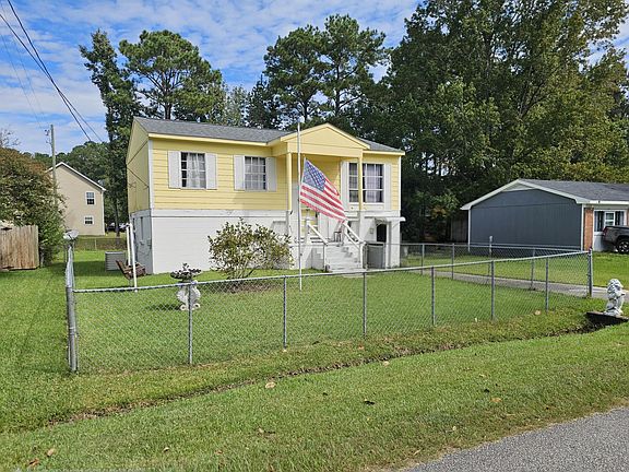 Investor special!Location + potential! Great opportunity to renovate this 4BR 2BA home with split-level design. Offering multiple levels of living space, the lower level features a primary suite with private access. The additional versatile downstairs space could be used as a mother-in-law suite, family room, office or potential rental income. Upstairs, you will find three additional small bedrooms and a full bathroom, living room and spacious kitchen with an attached sunroom/enclosed porch.Located on a large lot on a quiet street, the property has fenced front and back yards, as well as a shed wired for electricity - a great workshop space.This home is a true fixer-upper and is being sold as-is. Close to schools, shopping, I26. 25 minutes to downtown Charleston. 35 minutes to beaches. Sold AS-IS. Bring your tools and your creativity!