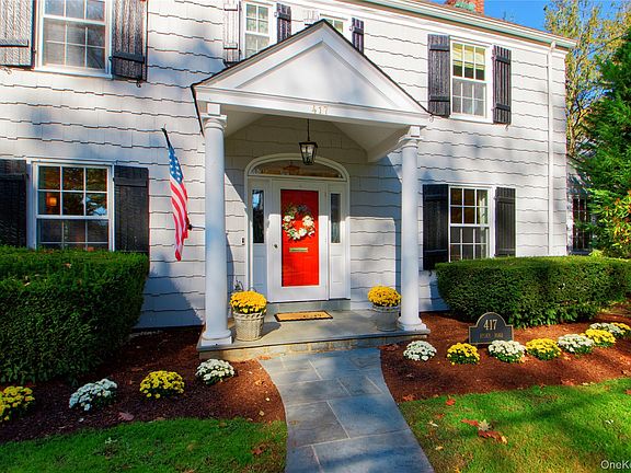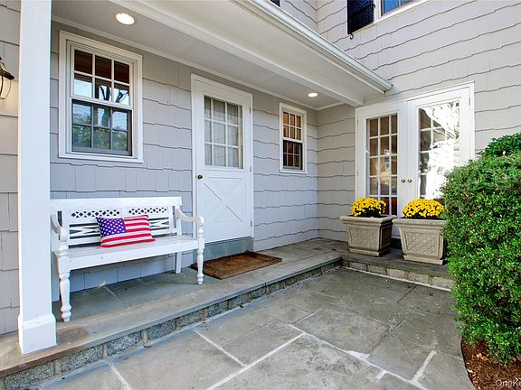 Step into this gracious home through a welcoming foyer that opens to an expansive living room with a wood-burning fireplace, French doors, and an adjoining sun-filled private office or den. The formal dining room, complete with built-in cabinetry, provides the perfect setting for entertaining. The eat-in kitchen seamlessly connects through pocket doors to a spacious family room, ideal for everyday living. A powder room, mudroom, and attached two-car garage complete the main level. Upstairs, the primary suite enjoys its own private wing, featuring vaulted ceilings, a charming window seat with built-ins, a dreamy walk-in closet, and a luxurious spa-like bath with heated floors, steam shower, and air-jet tub. A second primary with private bath, plus two additional large bedrooms, and a hall bath complete the second floor. The walk-up third level offers two generous bonus rooms. A full basement with high ceilings adds versatile bonus space for recreation, laundry, and storage. Conveniently located near schools, parks, town, and the LIRR, this residence combines traditional elegance with modern comfort for effortless everyday living.
