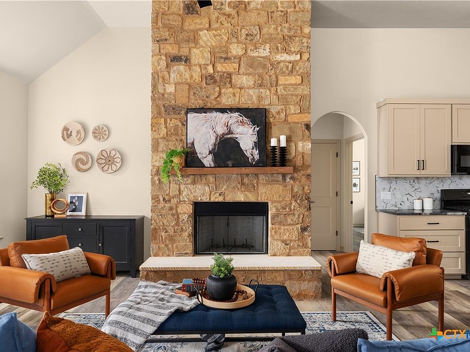 Discover Lockhart's newest gem, the modern home of your dreams with everything you could ever want from a short walk to downtown, to expansive opportunities! This new construction home sits on two lots with attention to detail in every corner just waiting for you to make it home. The home greets you with a coffered ceiling and an open floor plan with luxurious granite counters and the space you need to entertain all of your guests. The backyard has an expansive covered patio perfect for those chilly mornings to drink your cup of coffee or warm afternoons with friends and enough space in the yard to park your RV or add a play set for the kids. Both baths are outfitted with custom features and elevated finishes from dual vanities, to frameless glass and a walk in closet. The best part is that this home has plenty of individuality so you won't see this home twice! Have an EV? no problem! You get an EV charger in the garage and a bonus area located on top of the garage as well with exterior access that's 338 sq. ft. The bonus area upstairs has its own suite outfitted with a full kitchen, W/D connections and loft area perfect the growing family or extra curricular use offering privacy away from the main area. If going out is your thing, you can take a short walk to downtown Lockhart for some good BBQ or a good time with friends, convenience is everything with this home. With this area only being about 25 minutes away from Austin and 1 hour from San Antonio you'll see why there's so much buzz in this charming town! Be the first to own this wonderful home and enjoy all that this town has to offer. Welcome home!