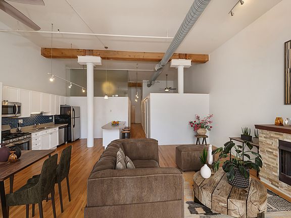 Spacious 2BR/2BA West Loop loft with a prime assigned parking spot! This stunning loft boasts dramatic 14ft ceilings, hardwood floors, a washer/dryer, stainless steel appliances, a gas fireplace, a balcony, and more. The main living area features floor-to-ceiling windows and an open kitchen and dining space, perfect for entertaining. The expansive king-size master bedroom offers ample closet space, bath, and complete enclosure. The second bedroom, also completely enclosed, includes a large walk-in closet and is ideal for a guest room, nursery, or office. Conveniently located to both the Loop and West Loop, you're just steps away from the Blue Line and Metra lines, with easy access to the interstate, and within walking distance to the Loop, as well as the area's renowned shopping, bars, and restaurants. The building offers package receiving, a rooftop deck, and a fitness center. A conveniently located parking spot is included!