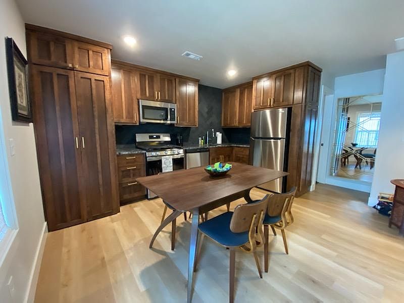 Completely new kitchens with stone countertops, tile backsplash and custom cabinets.