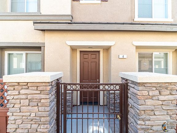Welcomed 417 Sunrise Ct #4 in Brawley Here is your chance...don't get left out in he cold this time. This home is like new! Only afew years old and well cared for. Live like a VIP enjoy the security of a gated community and all its amenities. Amenities like a park, club house, BBQ areas, gym and pool and spa. All within a short distance from your home. The best part is the HOA does all the OUTDOOR MAINTENANCE! That is right live a carefree life. Your pool and your home will always be nice, clean, and safe. Prefect for starter home, investment property or Up grade. This home is 1916 sqft of living space it features 3 beds and 2.5 baths. The kitchen highlights a 3-point gourmet design, upgraded mocha color cabinetry an Island, and granite counter tops. Accompanied with stainless steel package and bar seating around the Island it ready to entertain! Get ready for an incredible lifestyle and enjoy life. This home qualifies for USDA, FHA/VA and Conventional financing.