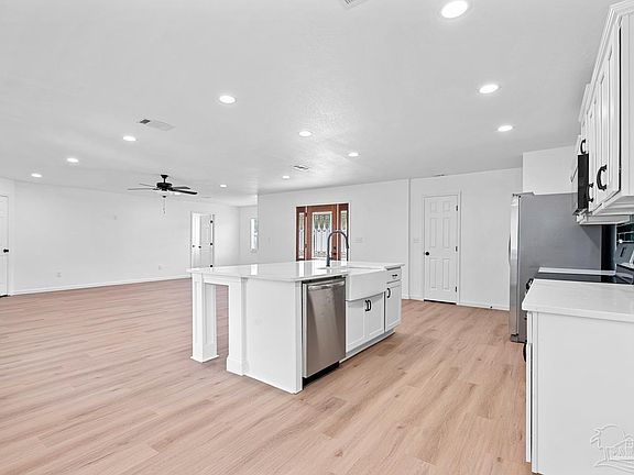 Completely Renovated & Move-In Ready! Welcome to this stunning 4 bedroom, 2 bath home perfectly situated on nearly 1 acre of land, offering the space and privacy you’ve been looking for. Every detail has been thoughtfully updated, giving you peace of mind and a truly move-in-ready experience. All New Upgrades: Brand new roof, HVAC system, tankless water heater, dual-pane windows, fresh paint, and gorgeous luxury vinyl plank flooring throughout. Dream Kitchen: Featuring sleek quartz countertops, an oversized island perfect for entertaining, stainless steel appliances, and a spacious pantry for all your storage needs. Outdoor Living: Enjoy your mornings and evenings on the new back porch overlooking your expansive yard. Conveniently located minutes from Perdido Beaches, the new Publix, and just a short drive to downtown Pensacola—this home combines modern comfort with an unbeatable location. Don’t miss the chance to make this fully updated home yours—schedule a showing today!
