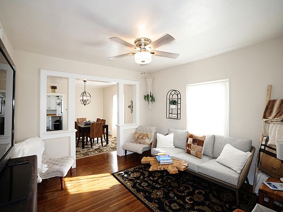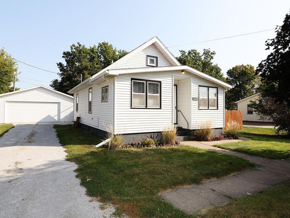 Welcome to a house full of cottage charm and full of character with a pottery barn feel! A 2 bedroom, 2 bath, with so many updates, where simple living is all on the main level including washer and dryer. Lots of natural light throughout with an open living concept where the living room and dining room are open and flow to the kitchen. The adorning of the old wood floors gives charm, with a sun porch for reading or coffee in the morning. After coffee tend to your privacy backyard, with roses and perennials where you can cut your own lilacs, peonies and roses. The basement is a blank slate, turn it into a game room, man cave, family room, or 3rd non conforming bedroom with its own bathroom. Lots of kitchen cupboards and a microwave/coffee bar area with more cupboards and cabinet storage along with a mudroom zone that has a large coat closet. The large private fenced yard has enough room for your pup to run and enjoy s'mores in the evenings at the in-ground fire pit. And with the fall season here the oversized 2 car plus garage is ready to host your favorite football games! The garage includes a breaker panel for all the juice you need for TVs, entertainment & tools! The fenced in yard does have the capability to open from the street side with double wide gates to open and park any additional toys, camper, trailer, etc behind the garage in yard space. Don't miss this little gem that has it all to make home!
