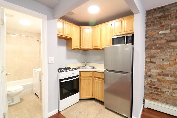 NO FEE! Renovated Studio * X Brick * High Ceiling * Prime Hell's Kitchen W 47 Apartment features: Beautiful Cherry hardwood floors. Open kitchen with full size fridge, oven and a microwave. Marble bathroom. Exposed brick wall. South exposure with great natural sunlight. Well maintain building. Renovated Lobby and hallways. New Camera Intercom installed. Pets case by case with landlord approval, Guarantor are welcome! Located in Prime Hell's Kitchen. Near major transportation at Port Authority station. Best bar and restaurants in the city. For more info, virtual tour or viewing, please contact May.