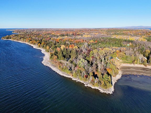 Experience one of South Hero’s most remarkable lakefront settings on this rare 1.2-acre point with 570 feet of direct shoreline. The property captures sweeping southwest views over the Broad Lake toward Sawyer’s Island and the dramatic Adirondack Mountains beyond. Mature cedars and oaks frame the parcel, offering privacy and natural beauty, while the shoreline transitions from a sandy south-facing cove to impressive west-facing ledge rock perched on a bluff 12-14 ft feet above the lake—perfect for enjoying spectacular sunsets over crystal-clear water. The property currently includes a rustic 1930s cottage, an accessory cabin, and two outbuildings, all set within a tranquil landscape of mature trees. The main cottage systems and associated structures are all failing at this time and are likely beyond the point of being renovated. The property is state-permitted for a new three-bedroom, year-round residence and features an existing in-ground wastewater system, with a design in place for a future mound system. A drilled well on site provides water service. A South Hero Building Permit and VT Shoreland Protection Permit will be required for the construction of a new residence. Set among fine homes and cottages on South Hero’s coveted West Shore, this property offers the ideal opportunity to create a stunning lakefront retreat with unmatched panoramic views and a truly exceptional location.