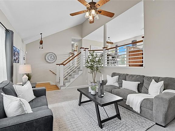 Welcome to 417 Wildflower Lane in the desirable River Meadows subdivision, just a short walk to Kearney schools! This 3-bedroom, 2.1-bathroom home offers charm, comfort, and versatile living spaces. Step inside to a warm and inviting living room centered around a striking stone fireplace, then head upstairs to the kitchen and dining area with plenty of room for family meals and entertaining. The primary suite with private bath, two additional bedrooms, and a full hall bath complete this level. The lower level features a second living area with walkout access to the backyard, a convenient laundry space, and access to the oversized, deep 2-car garage. The finished subbasement is a true bonus, transformed into a private movie theater oasis perfect for family nights, kids' sleepovers, or game-day entertaining. With its thoughtful layout, cozy charm, and unbeatable location, this home is ready to welcome its next owners.