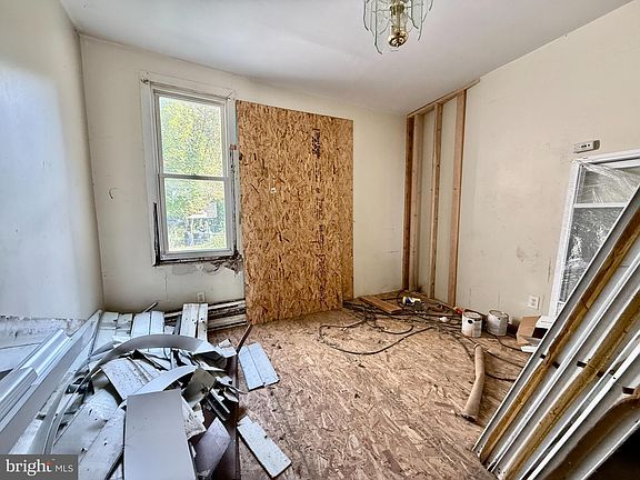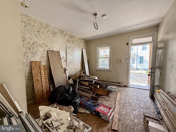 Investor Alert! This property at 417 York Street, Burlington, NJ presents a prime opportunity for a full rehab. This 2 bedroom 1 bath home with a finished attic for a bonus space offers wonderful opportunity to finish the project and occupy or to rent it out for investment income. The property has been gutted, and the addition with kitchen and bathroom was demo'd in preparation for rehab. This home does sit in a FEMA Flood Zone, the flood cert has been completed along with the plans to bring the property to proper code. The permits are in the process of being approved pending architect drawings and a few adjustments from the structural engineer. Seller will provide those and submit so buyer has a clearer way through to starting the renovation. 9 new windows have been installed. Porch has been repaired in front. The upstairs front wall has been repaired from water damage. The second floor boasts 2 bedrooms, while the finished attic holds the potential to be a third bedroom, office, or bonus space. The partial basement features a washer hook up and has been parged and painted. Permits have been filed by the contractor in preparation for construction. It's worth noting that flood insurance is required for this property, and it is being sold strictly As-Is. Additionally, the windows inside the property were purchased for this specific property and will be included with the right offer. Don't miss out on this chance to transform this property into a desirable living space.