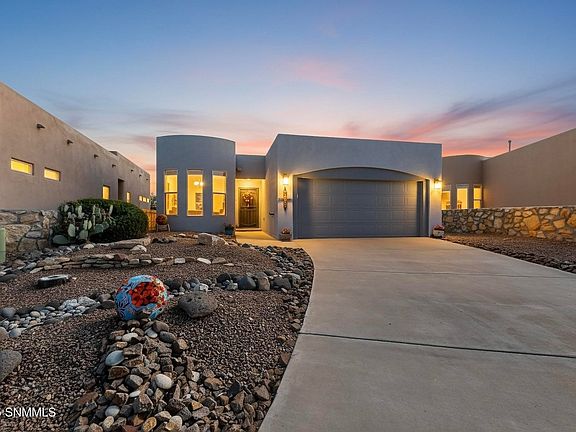 Welcome Home to a Delightful Southwest Gem tucked on a quiet cul-de-sac in sought-after Sonoma Ranch! Bursting with charm, this home blends comfort and style with fun southwest touches like a cozy kiva fireplace, coyote light plate covers, and dimmer switches for the perfect mood. The light & bright kitchen features stainless steel appliances, an oversized skylight, eat-in island, and a spacious dining room with oversized windows. The living room stuns with soaring ceilings, a grand fireplace, and jaw-dropping Organ Mountain views--also enjoyed from the primary suite! The smart split floor plan is ideal: one bedroom is perfect for an office, another for guests with nearby full bath and a complete Laundry Room+Washer/Dryer. Outdoors, relax under the covered patio, gather on the flagstone deck, and soak up incredible mountain vistas. Just minutes to golf, walking paths, shopping, dining & medical. Don't miss your chance to own this perfect slice of Las Cruces living. Call Today and Step into your Dream Life!