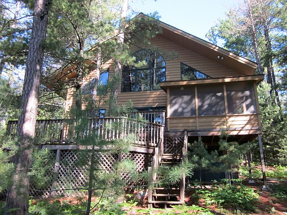 This property features 360' of lakeshore with 4 acres on beautiful Elbow Lake, with shoreline like lakes in the Boundary Waters Canoe Area. This 3 BR, 2 bath home is year round, designed by the sellers, built in 2000 by master craftsmen, tucked away in Red and White Pine woods, near the end of a private road. Seldom do quality and outstanding workmanship come through as it does in this home. The craftmanship is impeccable, maintained as if the house were built yesterday. There are hardwood floors, real wood beams, loft ceilings, extra large windows, skylights and a massive stone wood burning fireplace, that adds comfort in every season. There are great views of the lake from both levels, including the kitchen, dining room and screen porch. Sunlight reaches a window at some time every day. This is a cheerful place. First-time visitors usually say: "this is really extraordinary...a truly nice home!"