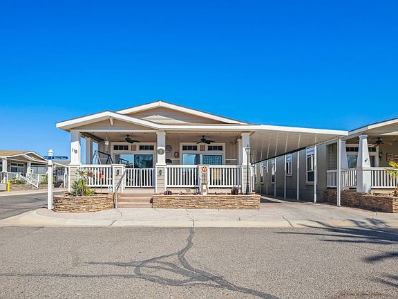 3 Bedroom 2 Bedroom 1782 Sq. Ft. Discover exceptional comfort and convenience in this spacious 2015 Golden West Limited Edition home, offering approximately 1,782 sq ft of well-designed living space. This all-electric 3-bedroom, 2-bath residence sits on an incredible corner lot with beautiful pool views, best enjoyed from the expansive 10' front porch complete with two ceiling fans, roll-down shades, and a charming porch swing-all included. Step inside to a welcoming living room featuring a fireplace, a stylish coffered ceiling with a ceiling fan, and included TV, sectional, and chair. The kitchen is a standout with stainless steel Maytag refrigerator and range, Samsung dishwasher, stainless steel double sink, abundant storage with pullout cabinetry, an inviting eat-at bar with upgraded pendant lighting, and included barstools. A sliding glass door leads from the dining room to the front porch, and the dining room set is also included. The primary bedroom features a walk-in closet, ceiling fan, and an included king-size bed and TV. The spacious primary bathroom offers a walk-in shower, double vanity, and a linen closet. The hall bathroom includes a convenient tub/shower combo. All bedrooms include ceiling fans. A large utility room provides excellent storage plus a dedicated counter for folding laundry. Throughout the home you'll find crown molding, blinds with window coverings, and a mix of comfortable carpet and durable vinyl laminate flooring. Additional upgrades include tinted windows with sunscreens, water softener, and recently replaced hot water tank, garbage disposal, and dishwasher. Firewood is included as well. Outside, enjoy a 14'-wide covered carport with a 65' driveway, roll-down shades, a detachable ramp, and a 19' x 12' shed with roll-up door for extra storage. This beautifully maintained home offers turnkey comfort with thoughtful upgrades and exceptional outdoor living-move-in ready and perfectly positioned for peaceful, resort-style enjoyment. Welcome to our thriving community, abundant with a plethora of amenities catering to all age groups! For families, we have a refreshing pool, two relaxing spas, and a safe children's pool. Additionally, our resort boasts a pool-side BBQ area, a state-of-the-art fitness center, and a spacious clubhouse. For water lovers, our community features a private boat launch and a stunning residents-only beach, perfect for enjoying the river. We also offer convenient onsite indoor storage facilities. Need something during your stay? Our general store has all the essentials-plus, you can treat yourself to our premium espresso-grade coffee! Embark on various recreational activities like fishing, boating, hiking, and golfing, or try your luck at the nearby casinos. There's truly something for everyone here, ensuring an enjoyable and fulfilling experience for all our valued residents and guests. PER036917CAA/B Call today