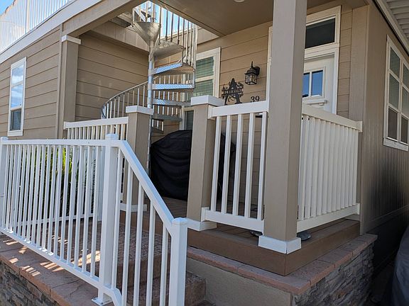Step through the inviting craftsman front door into this charming, fully furnished 3-bedroom, 2-bathroom haven that will instantly captivate you. Boasting 1080 sq. ft., this home's open concept floor plan provides ample space for quality moments with family and friends by the river. Every inch of this tastefully adorned river home is designed to make your stay unforgettable. Comfortably accommodating up to 9 guests, it ensures a memorable retreat. The kitchen is a chef's dream with sleek stainless steel appliances and a convenient center island, ideal for effortless entertaining. The abundance of rich wood Shaker cabinets adds a touch of elegance to the entire house. Notably, all windows come equipped with blinds to offer both privacy and style. Stepping outside, you'll find a spiral staircase leading up to a breathtaking 500 sq ft rooftop deck, providing awe-inspiring views of the river and the surrounding desert. It's the perfect spot to relish majestic desert sunrises and sunsets, adding a touch of magic to your days. A convenient 12' x 45' covered stamped concrete driveway allows for easy storage of all your river and desert toys without the hassle of towing them back and forth. The exterior boasts a beautifully landscaped area adorned with low-maintenance plants, ensuring a delightful and hassle-free outdoor experience. The master bathroom is a luxurious en suite, offering you a private sanctuary to unwind and relax. Ceiling fans in the living room, master bedroom, and one of the guest suites provide cooling comfort during warm days. The other guest bedroom features a thoughtfully designed bunk room with a 3-level bunk bed, adding a playful touch to the space. Additionally, there's extra sleeping space available for your convenience. The living room and all bedrooms are adorned with upgraded carpet, providing a cozy and stylish ambiance. For added convenience, a stackable washer and dryer are located in the guest bathroom, making laundry a breeze. Don't miss the opportunity to own your perfect river home, where comfort, style, and natural beauty come together to create an unforgettable living experience. Welcome to our thriving community, abundant with a plethora of amenities catering to all age groups! For families, we have a refreshing pool, two relaxing spas, and a safe children's pool. Additionally, our resort boasts a pool-side BBQ area, a state-of-the-art fitness center, and a spacious clubhouse. For the water enthusiasts, we provide convenient boat ramp access to the river, along with indoor onsite storage facilities. Need anything during your stay? Our general store is stocked with all your essentials and even offers premium espresso-grade coffee! Embark on various recreational activities like fishing, boating, hiking, and golfing, or try your luck at the nearby casinos. There's truly something for everyone here, ensuring an enjoyable and fulfilling experience for all our valued residents and guests. Serial # FLE220CA1938873 A/B Call today