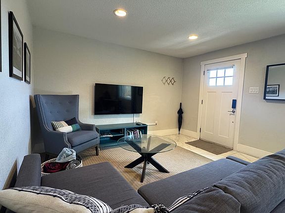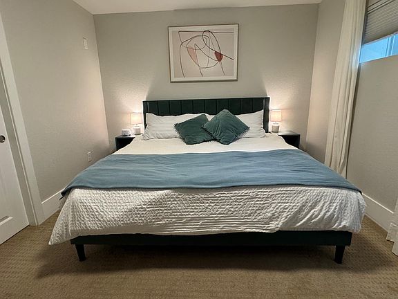 Tons of natural light, driveway parking spot. Bedroom has blackout blinds and a KING bed. The kitchenette has everything you need to cook; induction stovetop (1), crockpot, toaster oven, blender, pots and pans etc. Apartment size fridge with freezer. Bathroom has a luxurious rain shower.
