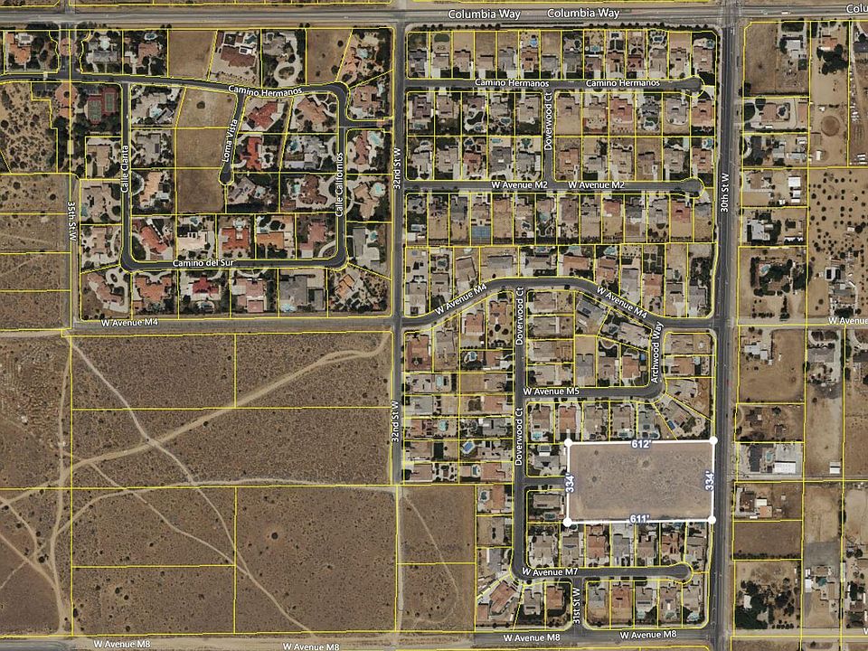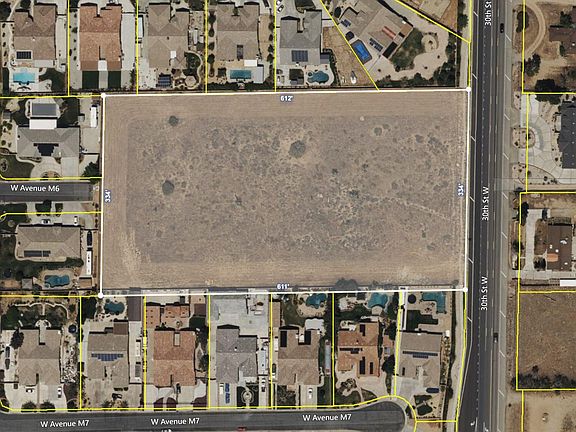Development site in a million-dollar neighborhood. Seller will consider seller financing with 50% down! Located within Lancaster's ''semi-rural'' luxury corridor, this flat 4.69 acre land parcel has frontage on 30th Street West and is surrounded on 3 sides by the ''Premier Collection'' community. This is a highly desirable neighborhood of sprawling semi-custom single-story homes and impressive 2-story homes, most of which are over 4,000 sqft. Homes in this neighborhood are frequently selling for over $1,000,000. The subject property is a true ''in-fill'' lot, as it is the missing piece that would complete the Premier Collection. West Avenue M-6 is a stub street that terminates at the west side of the property, and it could be easily extended through this property to create a tract. Homes could then be built on each side of the street. The property owner previously obtained a tract map (TTM 66793), now expired, yielding 8 half-acre lots. A developer could therefore purchase this property, re-apply for the tract map, and build 8 estate homes that could sell for well in excess of $1,000,000 each. There is currently strong demand for luxury new homes in the Antelope Valley. Another option is for a developer to utilize the new ADU laws and build 16 ''build to rent'' homes on the 8 lots, which would be in very high demand due to the location. The seller also previously obtained a water letter, grading report, and environmental report. Water, sewer, gas, and electricity connections are all present. A water meter box appears to be present alongside 30th St. Paraclete High School, a well-regarded private school, is right down the street. Additionally, this property may also be well-suited to someone looking for an oversized lot to build a sprawling custom estate with ample room for a tennis court, horse facilities, guest houses, etc. This is truly a rare find; an in-fill land parcel nestled within one of the Antelope Valley's most desirable residential areas.