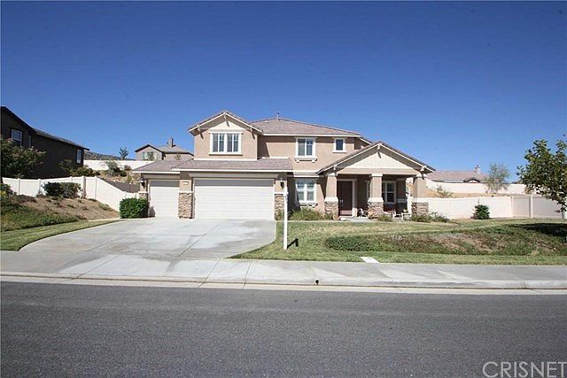 This 2009 Pulte built home, located in West Palmdale. With a 3-car garage, 3282 sq ft & 4 bedrooms, 3.5, formal living & separate formal dining, all designed to awe you. Plantation shutters are fabulous. The family room, with sky high ceiling is bright & sunny & has a stunning gas fireplace with a raised hearth. Open to a truly entertainers dream kitchen of amazing rich wood cabinets, granite counters, walk-in pantry & big center island. Spacious master suite has walk-in closet & bathroom has separate shower & tub, double sinks and sit-at vanity. 2nd mini-master with private bath upstairs. A big bright loft overlooks the family room. Bedrooms & bathrooms are big and modern. Back yard of this 13285 sq ft lot is landscaped, has covered patio & vinyl fencing surrounds property. RV possible