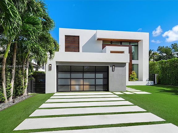 A modern beauty with spectacular finishes. Positioned in prime South Grove, this 2-story home is move-in ready with the sleek splendor you have been looking for in a Miami home. 5 total bedrooms, 4 upstairs and 1 downstairs, all en-suite with 2 guest bedrooms sharing a bathroom. Gorgeous porcelain wood-like floors throughout the entire home. Curated kitchen and walk-in wine cooler (200+bottles) with functionality and aesthetics in mind. Floor to ceiling windows allow the natural light to shine in. Covered outdoor living space with summer kitchen that overlooks the sparkling heated swimming pool with saltwater filter. Low-maintenance yard with artificial turf and native trees/plants with irrigation system. Gated and high-hedge for superior privacy. 2-car garage. Not in a Flood Zone!
