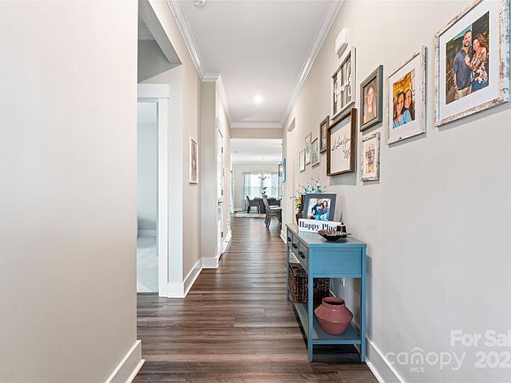 The spacious kitchen flows seamlessly into the living room and dining areas. Enjoy a beautiful primary bedroom with luxurious en-suite with a huge walk-in closet, fully tiled surround shower & dual sink granite vanity. Built in 2020, the homeowner did not spare any expenses when it came to all the upgrades. Extended EVP flooring, luxury primary bath enhancement, crown molding, Moen faucet, beautiful farmhouse sink, organizational kitchen cabinets, TV/Med upgrade, modern glam lighting.
