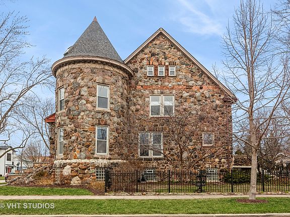 This stunning historic home has been masterfully renovated, boasting 4 finished levels of timeless elegance, and features the perfect blend of historic charm and modern amenities. It is an ideal setting for grand entertaining and intimate gatherings alike. The chef's kitchen has been meticulously designed with custom cabinetry & Quartzite countertops, making it the perfect place to prepare meals for family & guests. The adjacent breakfast room with fireplace provides additional space for casual dining and relaxation. Upstairs, the luxurious primary suite features a spa-like bath, separate shower, spacious walk-in closet, and laundry room. An upstairs sunroom offers a peaceful retreat with stunning views of the surrounding greenery. Three additional bedrooms, each with its own unique character and charm, offer comfortable & spacious accommodations for everyone. Full finished basement with a picture-perfect stone clad wine cellar. This historic home offers the perfect backdrop for memorable entertaining! All plumbing, electrical, mechanicals, HVAC, roof, windows & doors have been professionally replaced & are code-compliant. Corner lot with new 3-car garage. Fully-fenced yard. Walk to train & Downtown LaGrange!