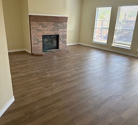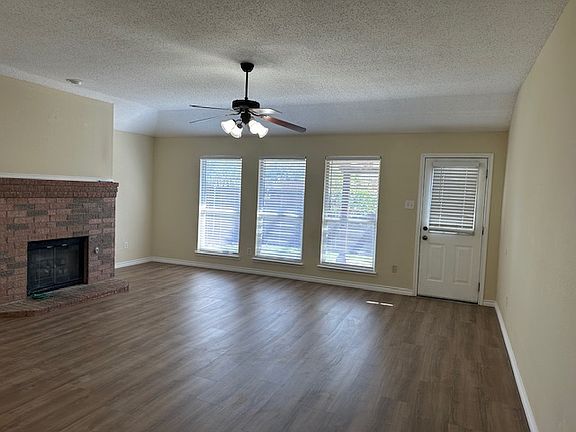 Privacy board-on-board fencePergola covered patioHuge master suiteCorner lotSpacious open kitchenBreakfast areaCharming brick fp