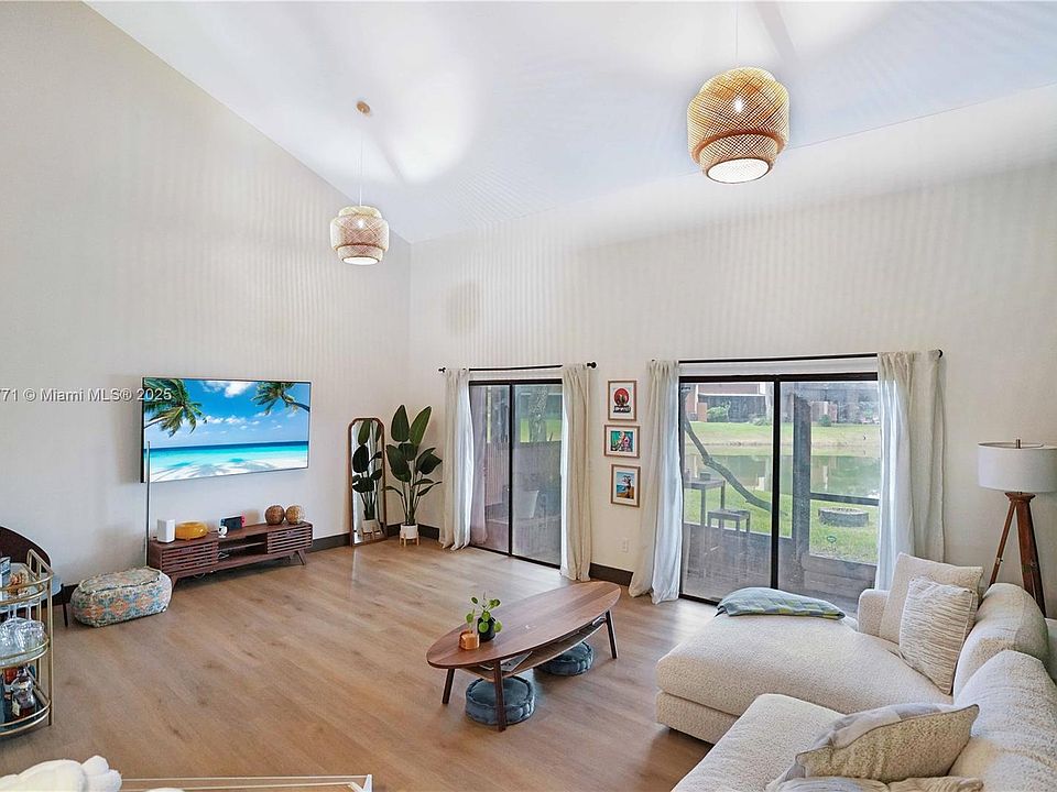 Welcome home to this cozy townhouse in Prime Davie Location! This bright and spacious townhome features an open living area with soaring vaulted ceilings and abundant natural light. Upstairs loft-style master suite includes a renovated en suite bathroom and walk-in closet. Downstairs offers an additional bedroom and beautifully updated full bath. Refurbished kitchen with adjacent den/office space. Separate laundry room. Enjoy outdoor living with a small front patio and a large screened-in back patio overlooking the lake. New roof (2021), A/C & water heater (2022). HOA includes exterior insurance and roof maintenance. Located in a highly rated school zone and within walking distance to Reflections and Bamford Parks with pool, tennis, pickleball, playgrounds, and more. Move-in ready!